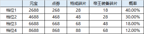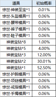 注:每次抽奖都会增加0.0001%惊世·神装至宝抽取概率