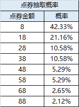 十连抽时必定中1次点券奖池,根据概率抽取不同百分比奖池点券,剩余9次奖励将在普通奖池内抽取