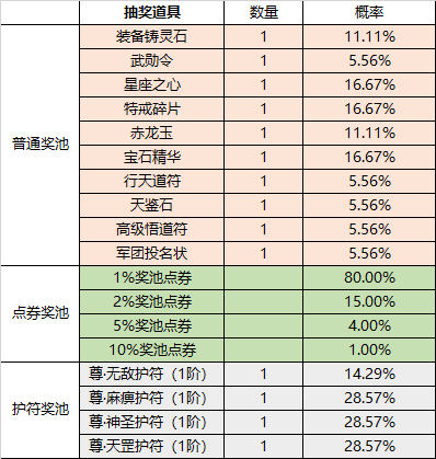 注:每次抽取时按概率抽取对应档位奖励,若该档位奖励剩余次数为0,则不再抽取该档位奖励