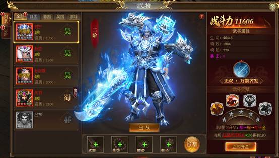 l 使用武将碎片可提升武将品质,激活强大的武将天赋被动效果